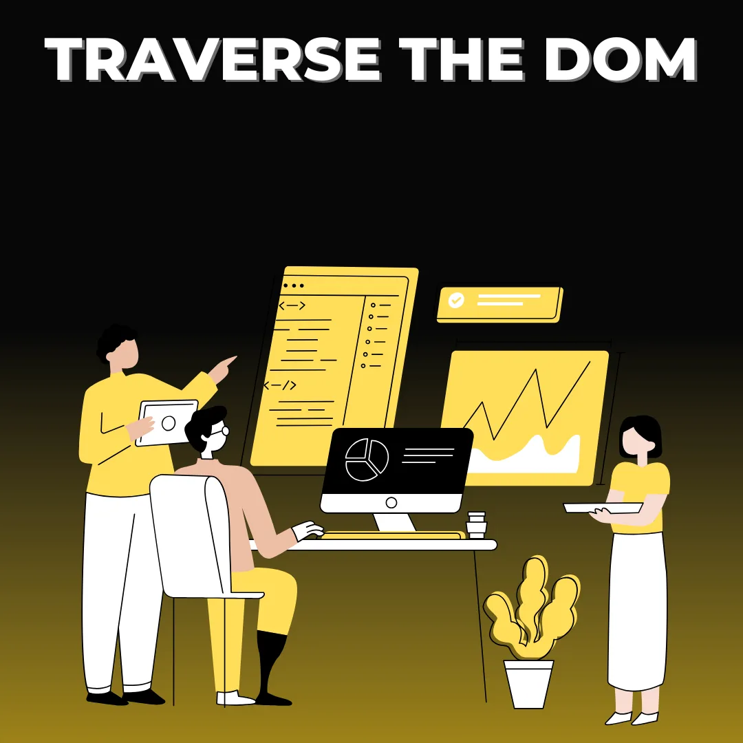 In JavaScript, traversing the DOM means moving through the DOM tree to access parent, child, and sibling elements relative to a given node.