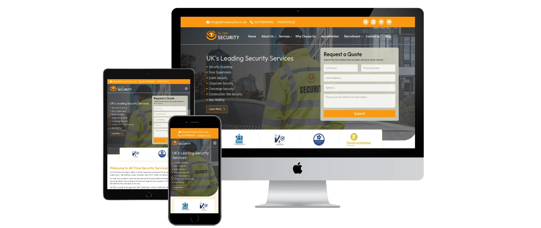 • All Time Security — Developed backend systems for a trusted SIA-compliant UK security firm, including service APIs, lead capture flows, and CMS for service, blog, and accreditation management.